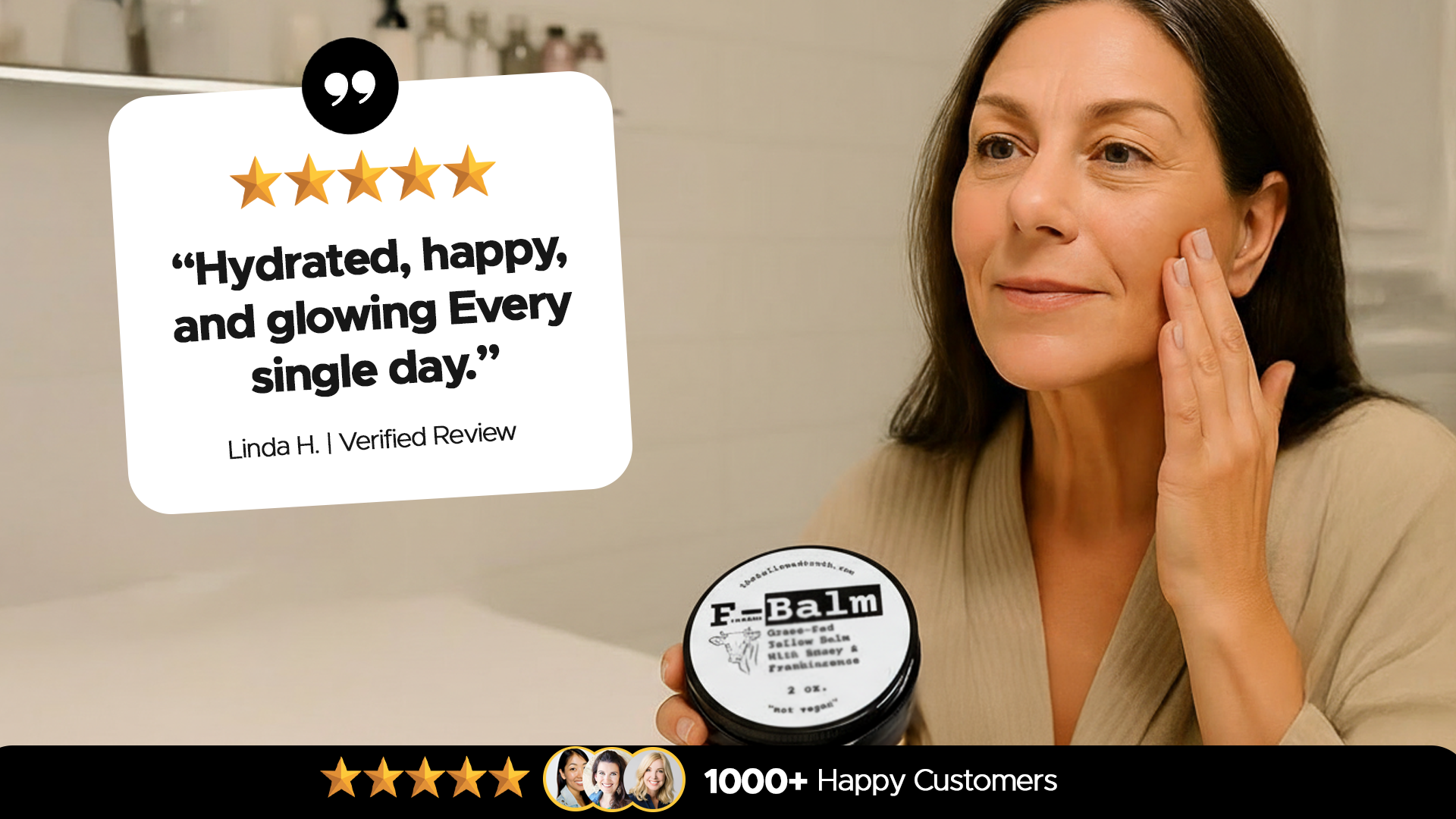 Tired of juggling 10 different bottles with ingredients you can't pronounce? F-Balm replaces your moisturizer, serum, toner, eye cream, and lip balm with one simple, powerful product.