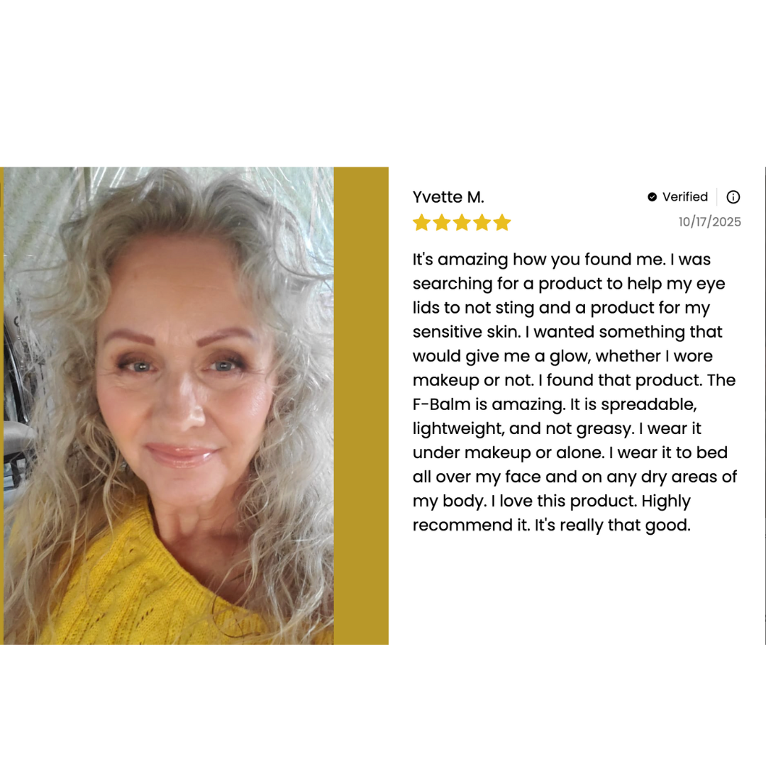 Many customers report relief from eczema, psoriasis, and other chronic skin conditions after switching to F-Balm. No steroids. No prescriptions. Just clean, nourishing ingredients your skin recognizes.